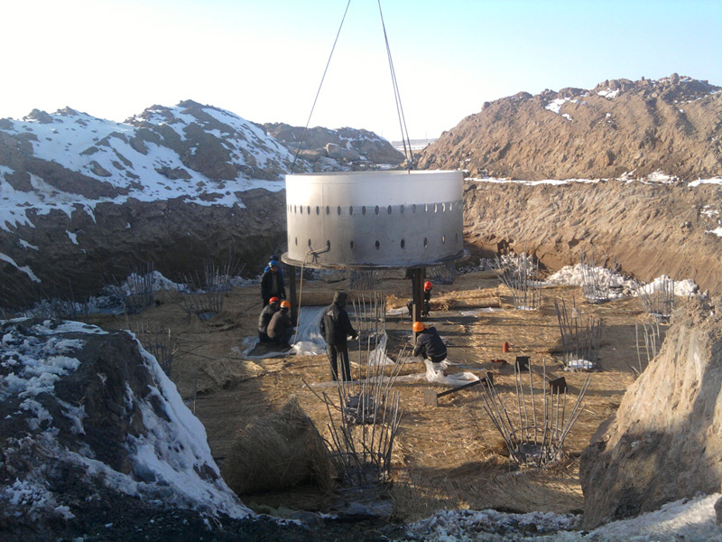 本期規(guī)劃容量為51MW,共包括841根Φ800mm鉆孔灌注樁,34臺(tái)風(fēng)機(jī)承臺(tái)基礎(chǔ)和箱變基礎(chǔ),混凝土總工程量為26200方,土方開挖和回填40000方。涉及多方交叉作業(yè)。