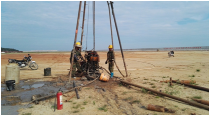 根據(jù)工程要求、地層特點及擬采用的基礎(chǔ)形式,勘察手段采用了鉆探、標準貫入試驗、波速測試和電阻率測試,關(guān)鍵環(huán)節(jié)照片詳見圖2-圖6。土工試驗項目包括含水量試驗、界限含水量試驗、比重試驗、基巖飽和單軸抗壓強度試驗、巖塊密度試驗、巖塊波速測試等。