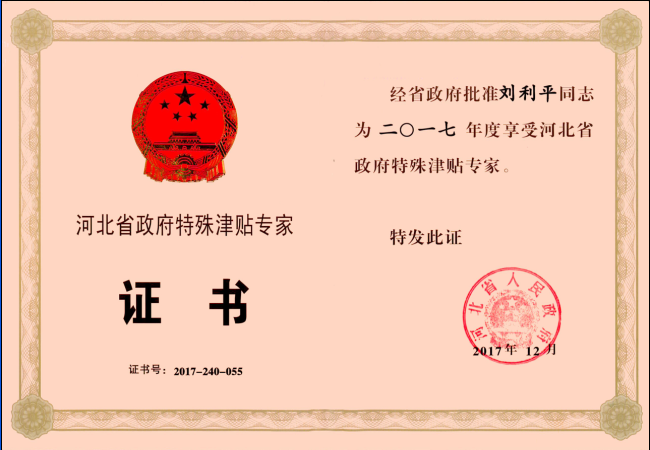 經(jīng)公司推薦申報、市人力資源和社會保障局初評、省人力資源和社會保障廳組織專家綜合評委會評審,報省委人才工作領(lǐng)導(dǎo)小組審核、省政府批準(zhǔn),公司副總經(jīng)理劉利平榮獲省政府特殊津貼專家稱號。