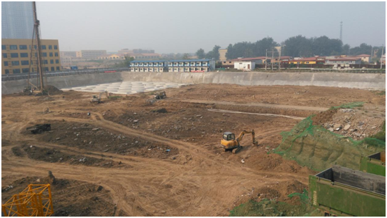 本工程于2014年5月25日開(kāi)始施工,2017年8月15日完成全部施工內(nèi)容,施工期間參建人員32人,投入錨桿機(jī)、深層攪拌樁機(jī)、打井機(jī)等設(shè)備共6臺(tái)。完成土釘墻5038㎡、降水管井1286延米、深層攪拌樁6231延米、設(shè)計(jì)專家論證一項(xiàng)及后期降水維護(hù)。