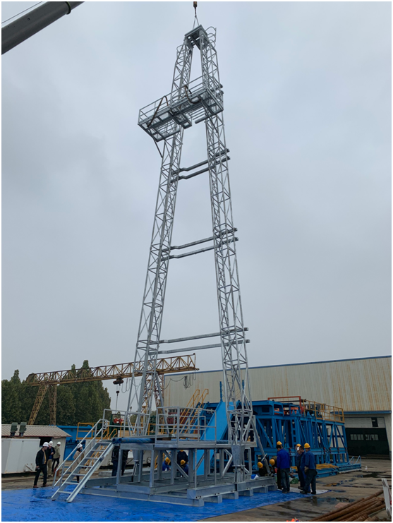 河北建勘鉆探設(shè)備有限公司為日本金泉株式會社研制的A25-50/1.5(RESORT 21HD)熱鍍鋅鉆塔,已經(jīng)全部安裝調(diào)試完成,2019年10月17日,日本內(nèi)田金泉株式會社的總經(jīng)理內(nèi)田米房一行來到河北建勘鉆探設(shè)備有限公司,對銀光閃閃的鉆塔外觀質(zhì)量、安裝過程、基本參數(shù)進(jìn)行了檢查驗(yàn)收,對鉆塔設(shè)計制造綜合技術(shù)指標(biāo)評價滿意,順利通過日方驗(yàn)收。