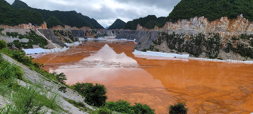 對(duì)尾礦庫(kù)來(lái)說(shuō)防止?jié)B漏極其關(guān)鍵,此項(xiàng)目排泥庫(kù)庫(kù)區(qū)位于巖溶發(fā)育區(qū),巖溶治理是關(guān)鍵中的關(guān)鍵。庫(kù)周設(shè)計(jì)3座堆石壩,2座混凝土重力壩,壩體的施工質(zhì)量關(guān)系排泥庫(kù)的運(yùn)行安全。
