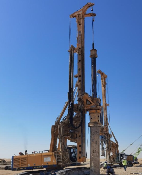 該項目位于迪拜,是穆罕默德·本·拉希德·阿勒馬克圖姆太陽能公園的第四區(qū)。受中建三局委托,我公司承擔本項目樁基施工,采用公司自有旋挖鉆機及錨桿鉆機進行干孔灌注樁施工工藝施工,共完成混凝土灌注樁9874根,灌注樁樁身完整性檢測3300根,水平側(cè)向載荷試驗36根,驗證荷載試驗7根。