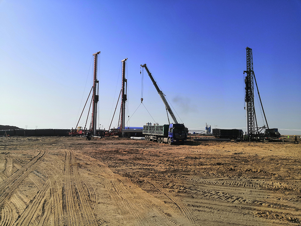 本項目位于內(nèi)蒙古自治區(qū)錫林郭勒盟,受京能錫林郭勒能源有限公司委托,我公司負責本項目樁基施工。主要工作內(nèi)容為鉆孔灌注樁施工、預應(yīng)力混凝土管樁施工。