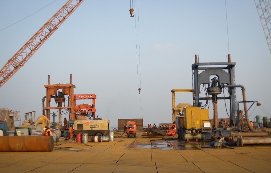 本工程豎井采用鉆井法施工。鉆孔采用全液壓鉆機氣舉反循環(huán)排渣、一次性鉆進成孔;采用鋼井壁,漂浮法下沉,孔口焊接接長;壁后充填水泥漿進行止水固壁。